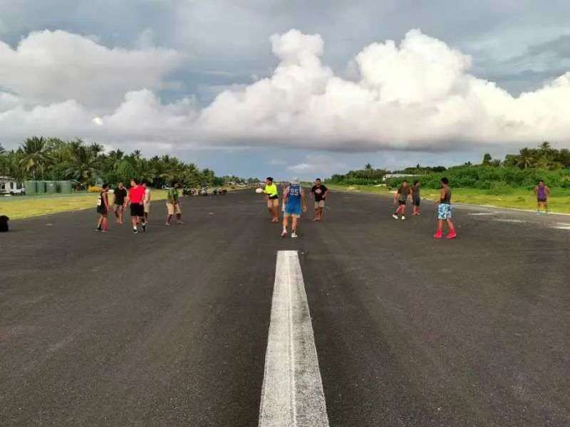 图瓦卢富纳富提机场,当地居民在这里聚会、玩耍、迎接飞机、等待亲人。@杨玲玲