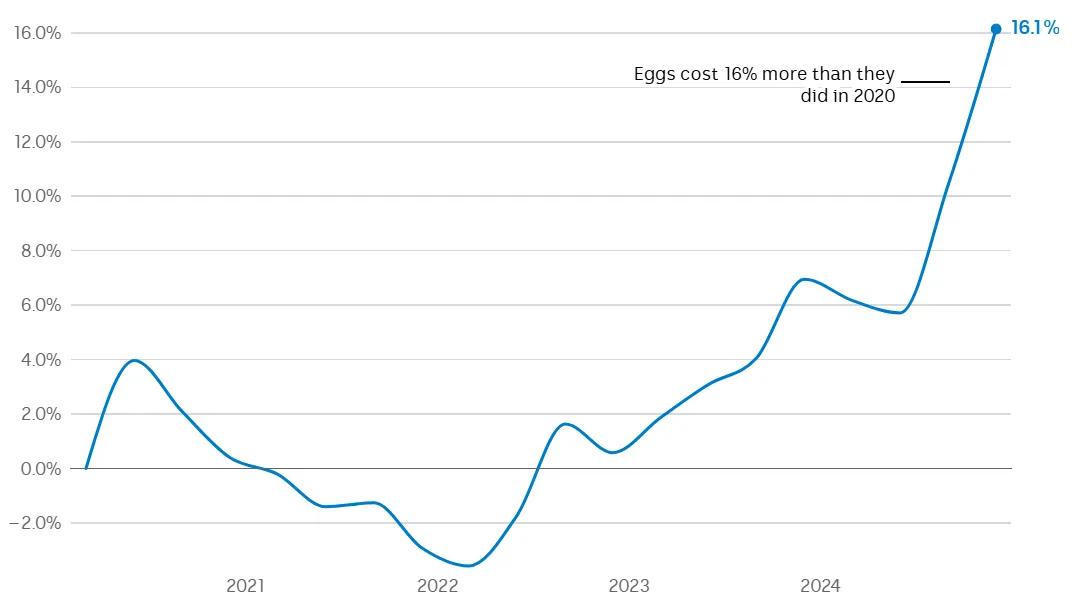 因为禽流感和淘汰鸡笼政策,鸡蛋供应紧张,价格疯涨18.6%。