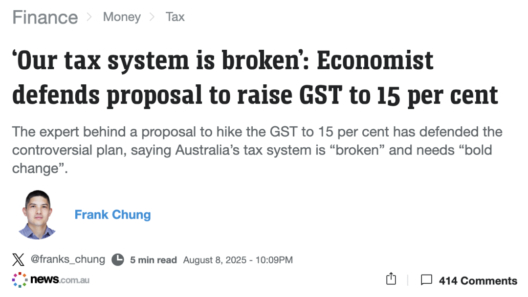 大家正感叹生活成本高得离谱,新闻又传来一个让人心头一紧的提案,澳洲的消费税 GST可能要从 10% 提到 15%,而且连新鲜食品、托儿费、学费都要征税。