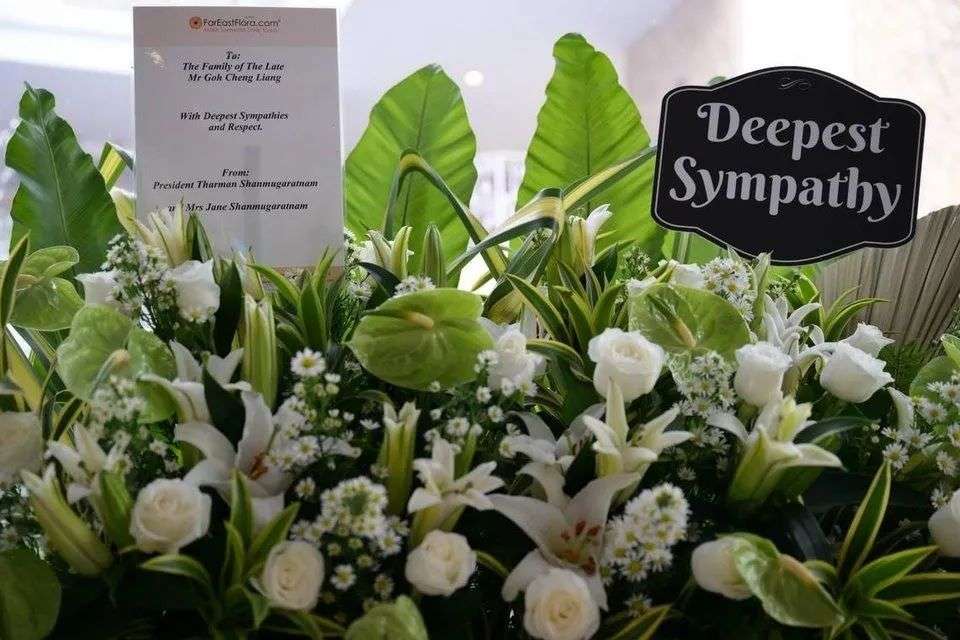 (新加坡总统尚达曼为吴清亮送上吊唁花圈)