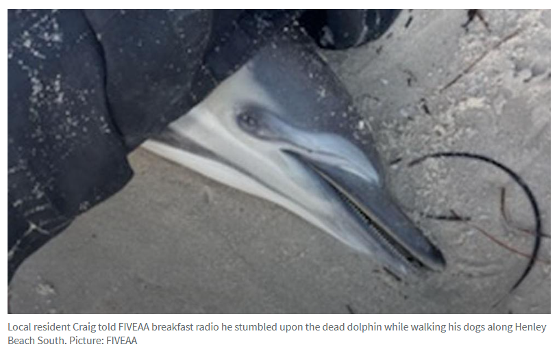 当地居民Craig透露,周三早晨他在Henley Beach South遛狗时意外发现了这具海豚尸体。他表示海豚被冲上岸的位置位于出水口与码头之间。