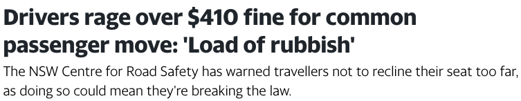法律专家Avinash Singh也指出,很多人都不知道座椅倾斜太多会导致罚款,这主要是因为政府和警方没有明确标准。