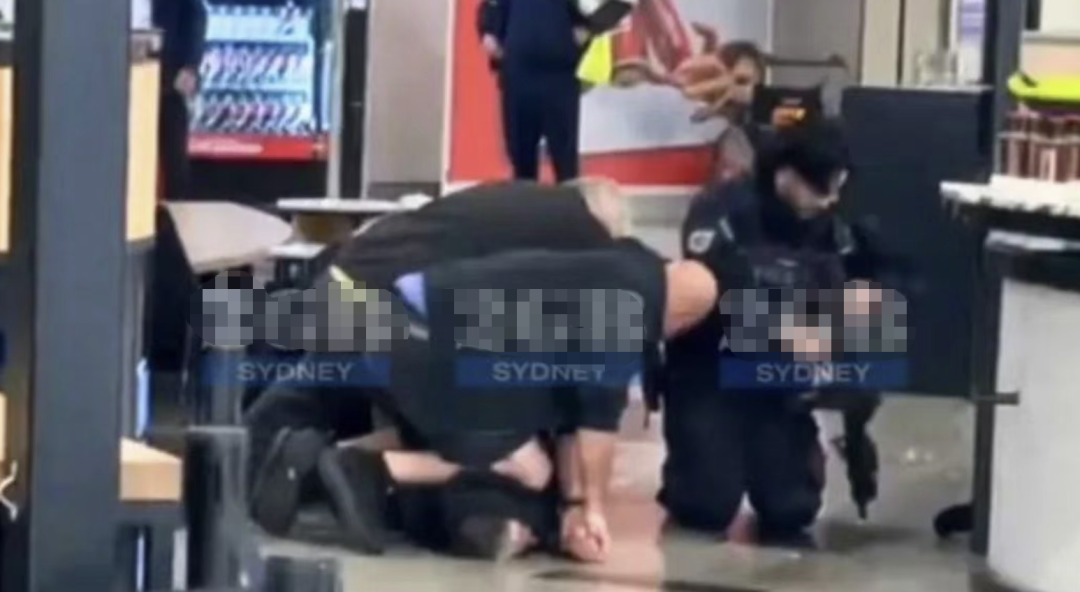 警方试图与这名男子交涉,但这人表现出“攻击性言语和动作”,被多名警员及路人合力制服。