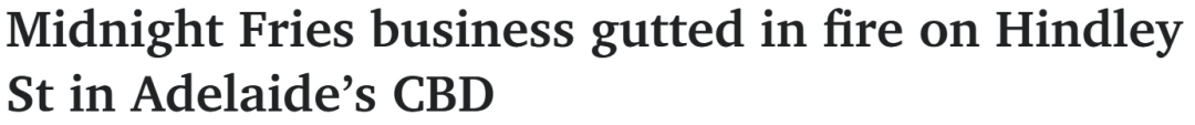 周四下午,阿德莱德市中心一间商铺突发火灾,让邻近店主震惊不已——因为这家店原定仅隔一天便正式开业。火灾发生在周四下午 2 点 20 分,地点位于欣德利街(Hindley Street)的“午夜薯条”(Midnight Fries)。消防与紧急服务队(MFS)迅速赶到现场展开扑救。