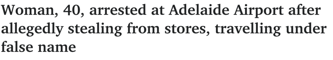 https://www.adelaidenow.com.au/truecrimeaustralia/police-courts-sa/woman-40-arrested-at-adelaide-airport-after-allegedly-stealing-from-stores-travelling-under-false-name/news-story/f655ddc7b8aa1284549a8483f91a4559