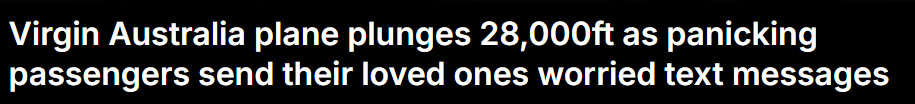而本周三晚,维珍澳大利亚航空一架航班在飞行途中突发急速降压,飞机在短短数秒内骤降近九千米,机上乘客经历了高空惊魂!