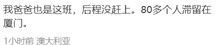 此外,还有乘客表示,由于此次延误,他们未能赶上后续中转航班,导致80多名旅客被迫滞留在厦门。