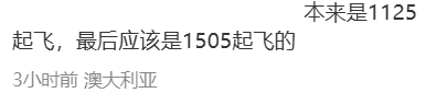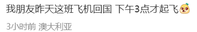 根据社交媒体上的信息,该航班原定于上午11:25起飞,但因事故延误至下午3点才得以起飞,延误时间超过3小时。航空公司向乘客发放了20澳元的餐补作为补偿,但这一措施并未完全平息旅客的不满情绪。