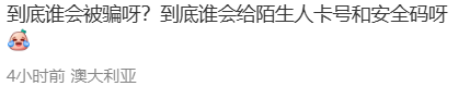 有人看到帖子后质疑,“到底谁会被骗呀?谁会给陌生人卡号和安全码啊。”