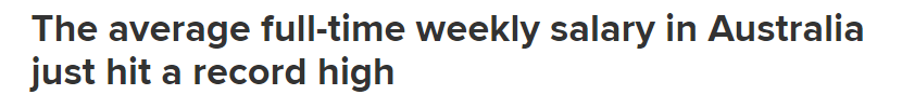 不过尽管在澳洲职场,居家办公现象越来越常见,为大家省下通勤费通勤时间,但并未影响澳洲员工收入,澳洲统计局最新数据公布,澳洲全职员工平均周薪刚刚创下历史新高!