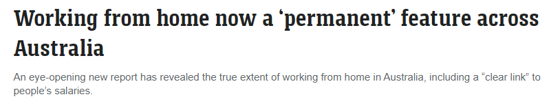 新发现明确表明,'居家办公'已成为澳大利亚就业领域永久且独特的特征”。