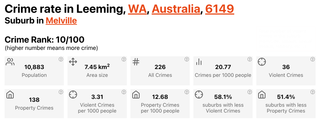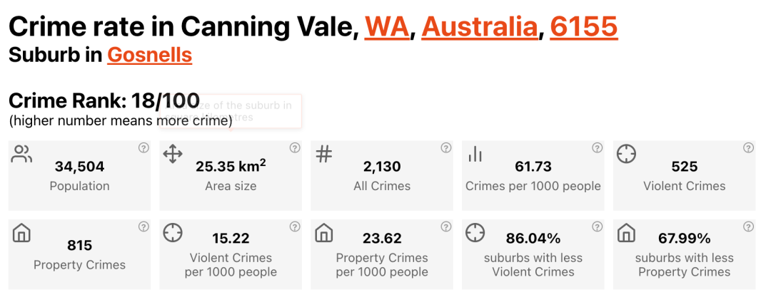此前我们也结合犯罪率统计网站RedSuburbs上的数据,重点关注了珀斯华人区的犯罪率问题。
