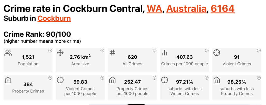 而在不少人印象里治安还说得过去的Cockburn Central,居然得到了90分!