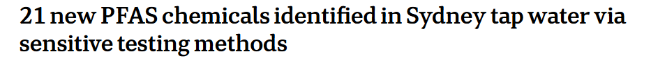 近日,据澳媒报道,澳大利亚研究人员在悉尼自来水中发现了21种新的“永久化学物质”,其中一种是全球首次在自来水中检测到。
