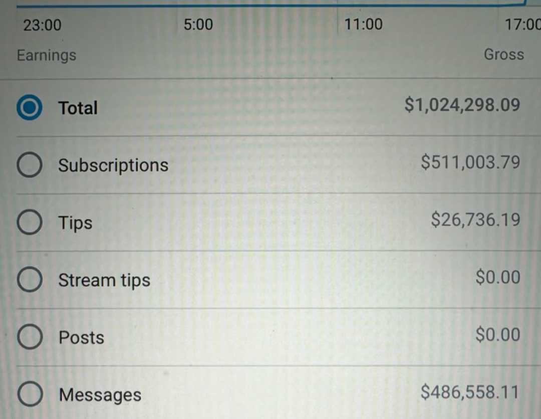她发布了网站后台数据,数据显示她在短短不到1天时间内吸金超100万美元,其中大部分来自于网友订阅的月度订阅号,少部分来自于小费,还有一部分来自聊天中的转账。