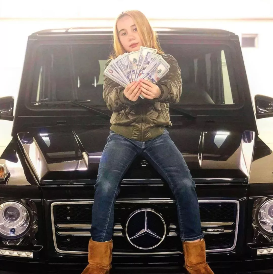 2018年,Lil Tay刚出名时炫耀的钞票和豪车豪宅,最后被人发现都是属于她那位做着高级房产经理妈妈手上的客户的,这些不属于她们的财产,被不到11岁的Lil Tay当作炫富道具。