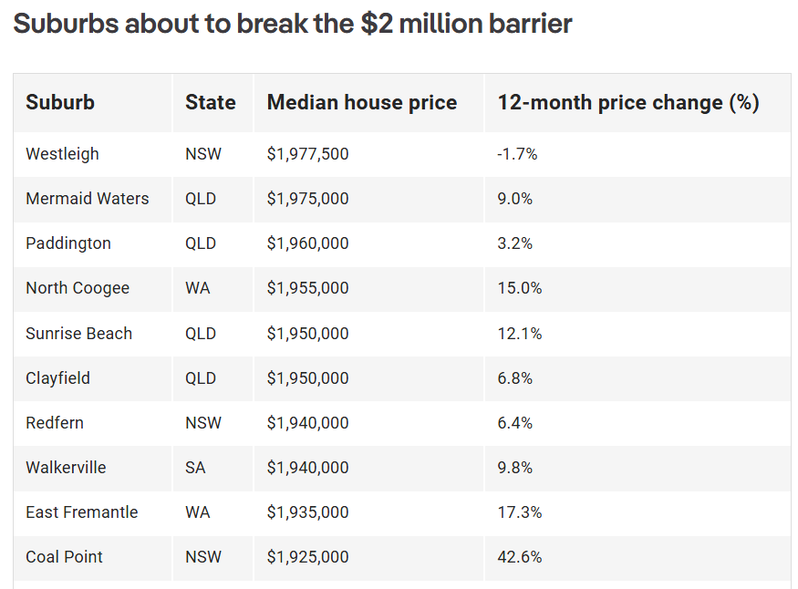 像East Fremantle、Sunrise Beach和Redfern等区,虽曾短暂触碰200万澳元门槛,但最新市场走势表明,这道价格线即将被真正突破。