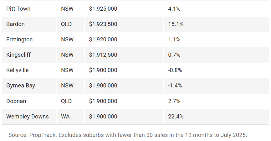 这些区在过去一年内至少完成了30宗房屋交易,中位价普遍处于190万澳元至200万澳元之间。