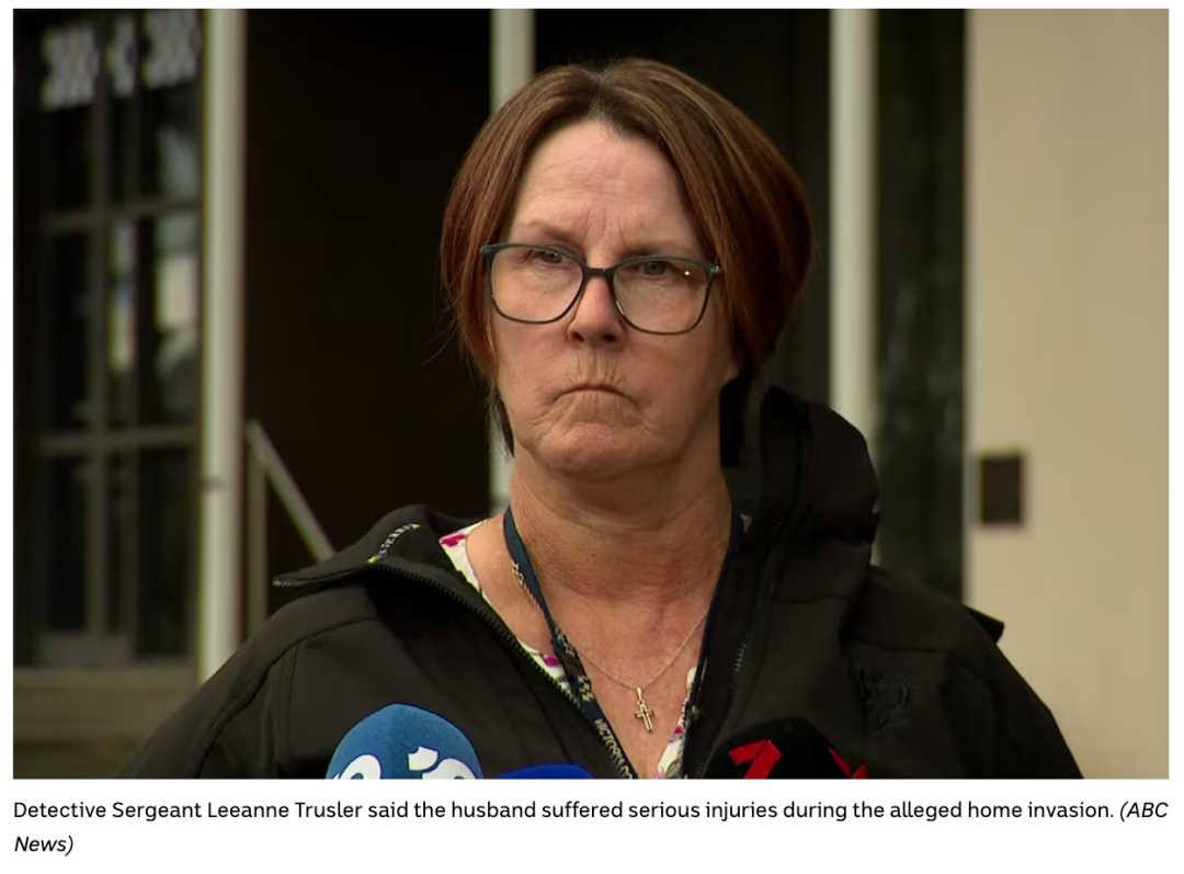 维州警方发言人称,这名父亲被砍刀疯狂砍了11刀,头部、脸部和手臂受重伤,手臂骨折,目前仍在医院,所幸没有生命危险。妻子只是轻伤。