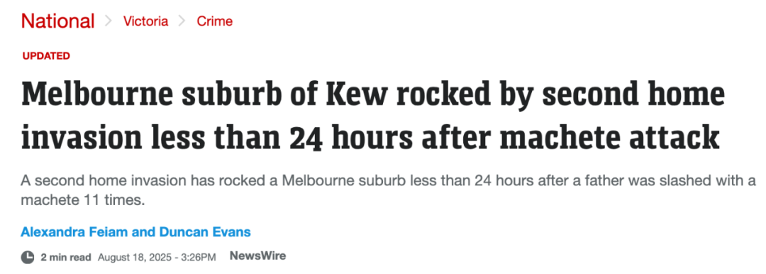 短短不到24小时,先是发生了全城震惊的“恐怖血案”,紧接着又爆出入室抢劫案件,Kew居民彻底慌了!