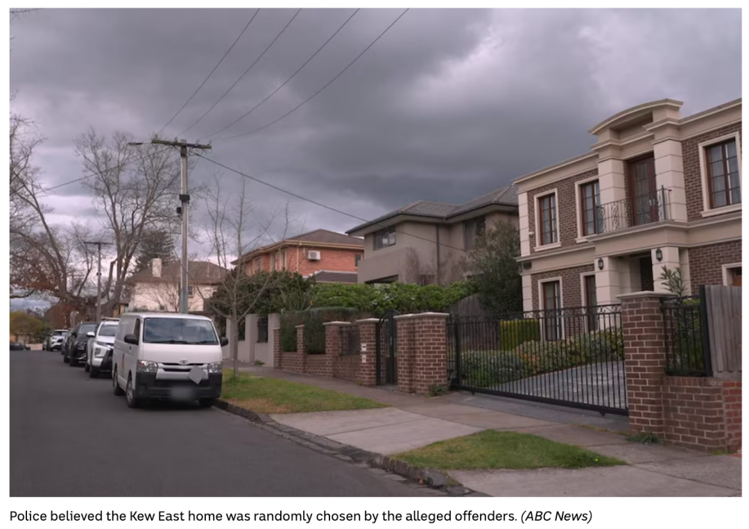 目前已有三人被捕,一名来自 Caroline Springs 的24岁男子,以及两名分别来自 Caroline Springs 和 Frankston 的少年(16岁和17岁)。他们被控多项罪名,包括加重入室抢劫、故意造成严重伤害以及非法禁锢,将分别在墨尔本Magistrate法庭和青少年法庭出庭。