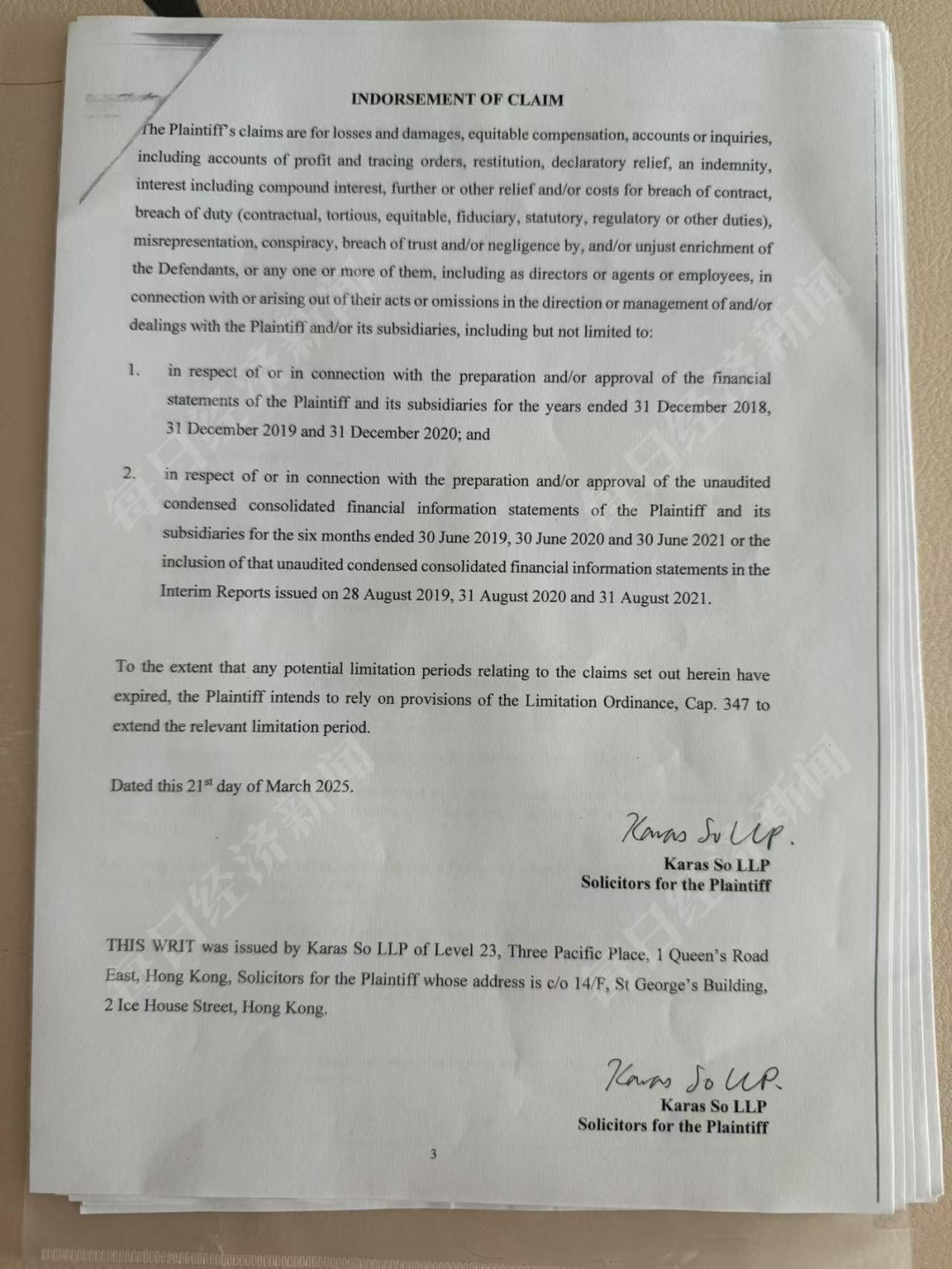 去年,香港法院已冻结其在港资产约600亿港元,今年8月,法院追加其妻子为被告,并对其美国资产发出临时禁制令。