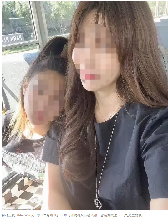 刘先生表示,对方自称名叫王麦(Mai Wang),浙江杭州人,浙大毕业后赴美,拥有南加大读硕士学位。