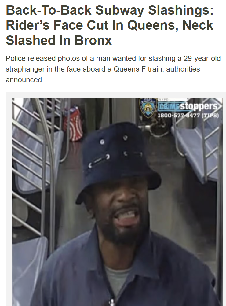 就在不到24小时后,8月10日晚间8:49,布朗克斯2号线南行列车接近 Bronx Park East 站 时,又发生一起持刀攻击。