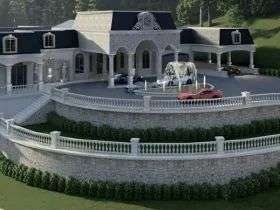 拟建的300万美元豪宅包括以下设施:图书馆、六间卧室、九间浴室、两个厨房(包括一个脏厨房)、带桑拿浴室的健身房、停车场、双车道保龄球道、男士洞穴、泥浆室、带滑梯和吊床岛的游泳池、祈祷室、室内篮球场、带爆米花吧的电影院、未来的祖母屋、美容室、六车位车库、酒吧和游戏区。