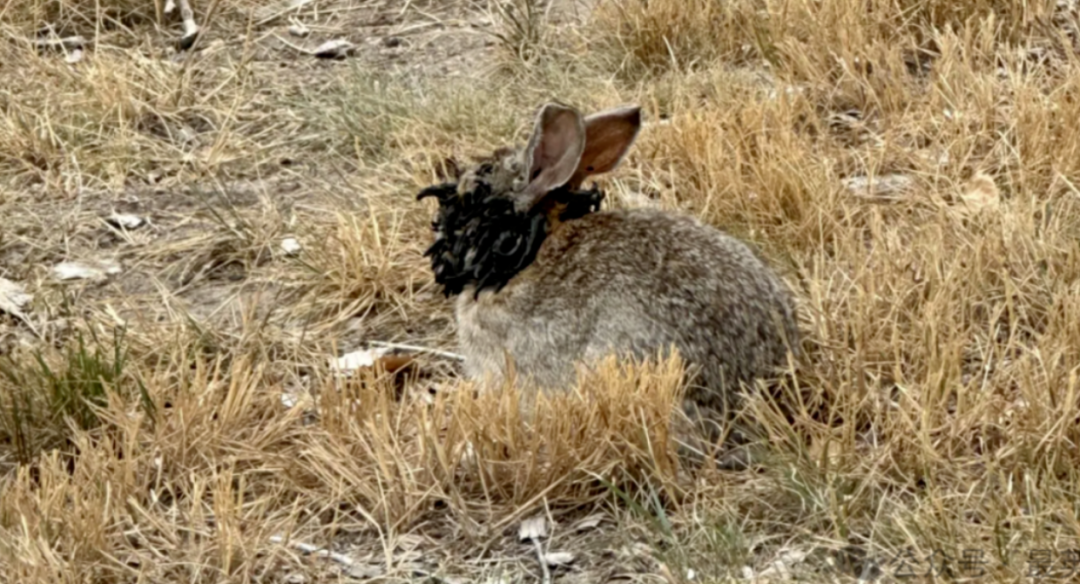 而就在前几天,在美国科罗拉多州的柯林斯堡,还有人发现了一些“长触手”的棉尾兔——它们头上、脸上冒出了黑色、像小触手一样的突起。