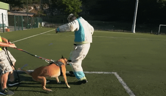 有时也会录一些所谓的“挑战视频”,比如身穿防护服,被烈犬攻击撕咬;
