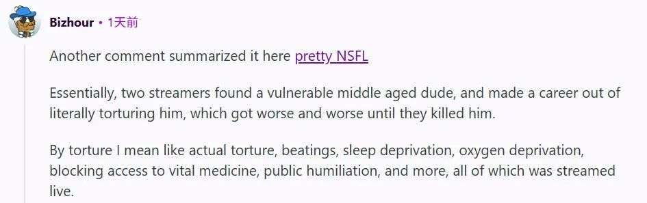 “本质上来说,两个主播发现了一个脆弱的中年男子,并以折磨他为职业,情况越来越严重,直到他们把他弄死。