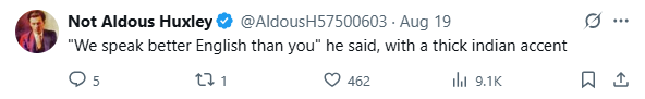 “他用非常浓厚的印度口音说:‘我们的英语比你们好’!”