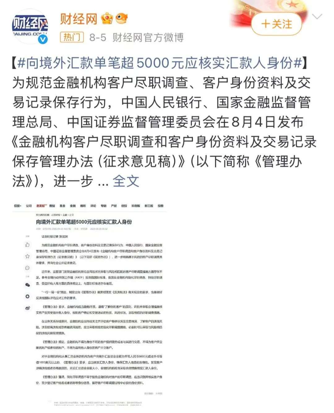 近日,中国人民银行、国家金融监督管理总局与中国证监会联合发布了《金融机构客户尽职调查和客户身份资料及交易记录保存管理办法(征求意见稿)》,引发全球华人关注!