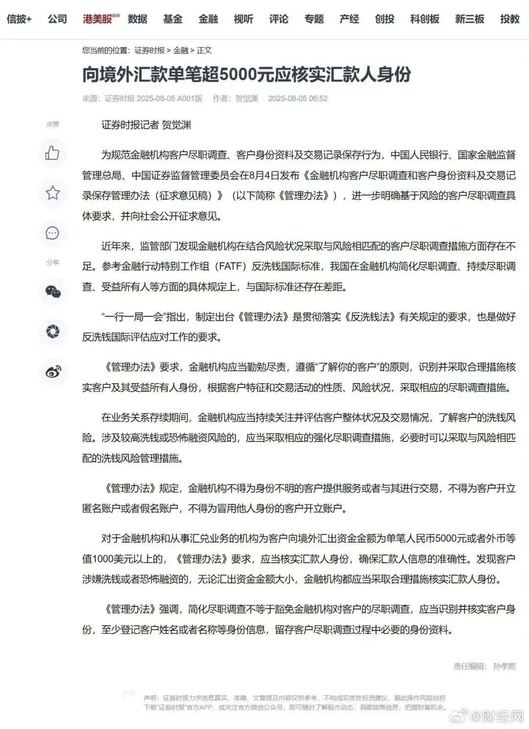 超过5000元:金融机构必须核实汇款人身份与用途。