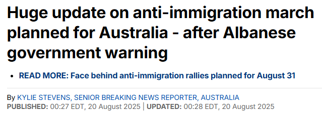 因为对移民人数过多感到不满,澳洲即将在8月31日爆发超大规模的反移民游行,游行地点已经公布!
