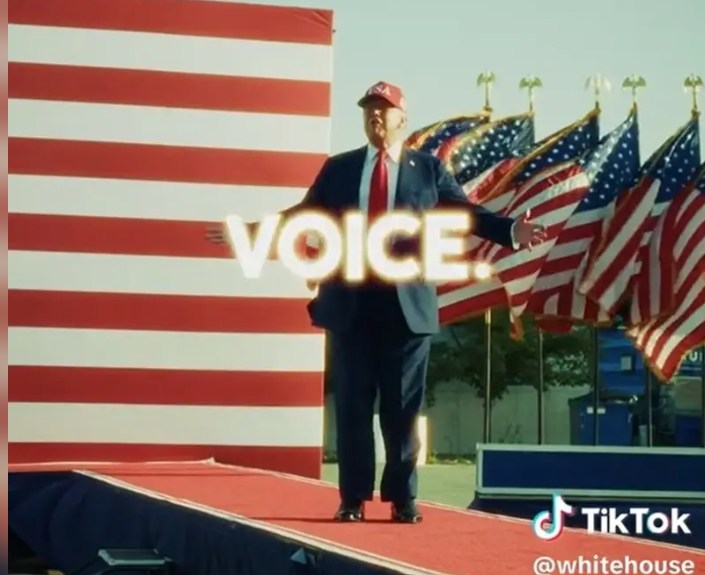 8 月 19 日,美国白宫在 TikTok 上开通了官方账号 @whitehouse。第一条内容是一段 27 秒的影片,以“美国,我们回来了”为开场,并由总统川普出镜表示“我是各位的声音”。
