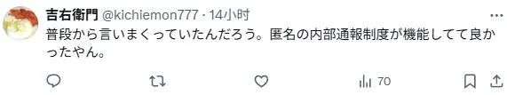 江口博行在接受调查的过程中表示:“原本以为自己已经很注意与职员的相处方式……对此真的感到非常抱歉。”