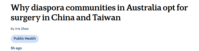 当人们面对一眼看不到头的看病和治疗等待期,大家只能另寻他法,比如说很多澳洲华人,他们的解决办法就是回中国看病!