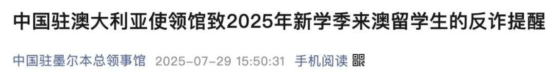 值此新学期之际,中国驻墨尔本总领馆也特别为来澳的中国留学生们发布了重要的反诈提醒!