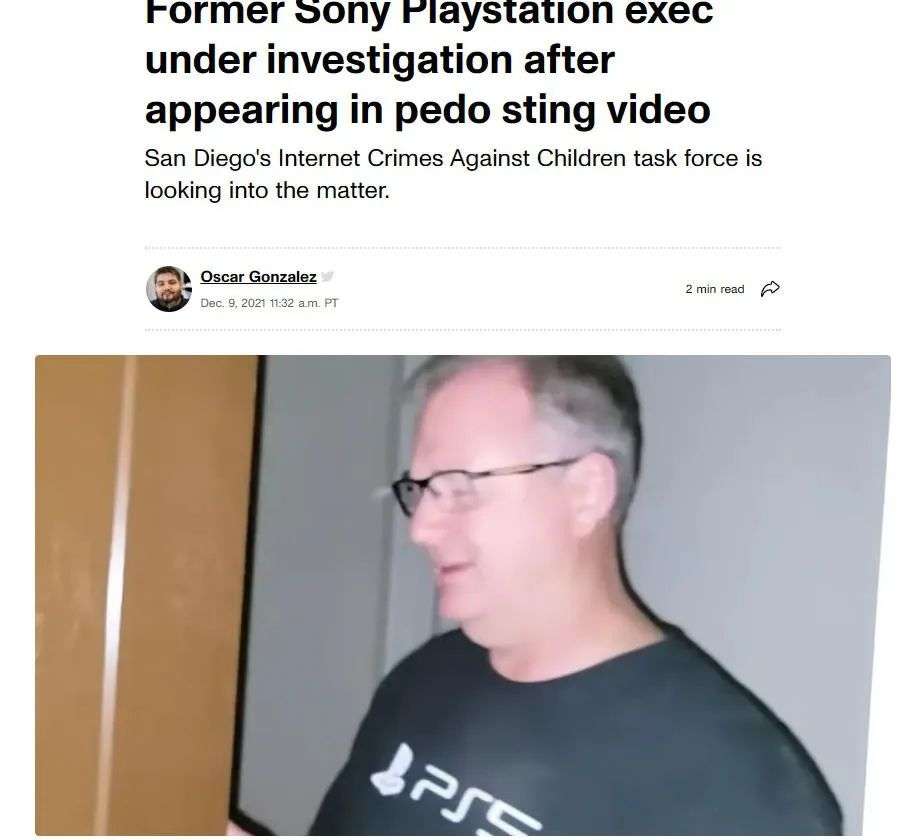 当然,最终来到他家的只有“恋童癖猎人”。Cacioppo见到他们拿着相机和补光灯,知道事情除了披露,但他的脸还是被录了下来——他甚至还穿着索尼PS5的T恤,这下洗都没法洗了,索尼只好将其干脆利落地解雇......