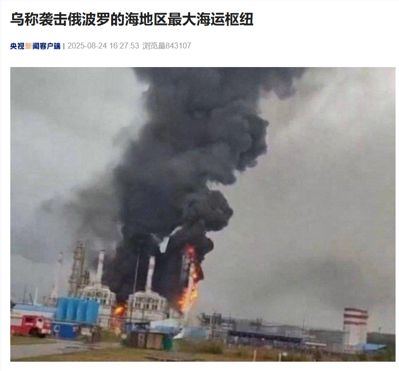 据参考消息援引德新社8月24日报道,俄罗斯地方官员当天说,俄罗斯波罗的海港口乌斯季卢加的一座炼油厂在乌克兰无人机袭击后起火。