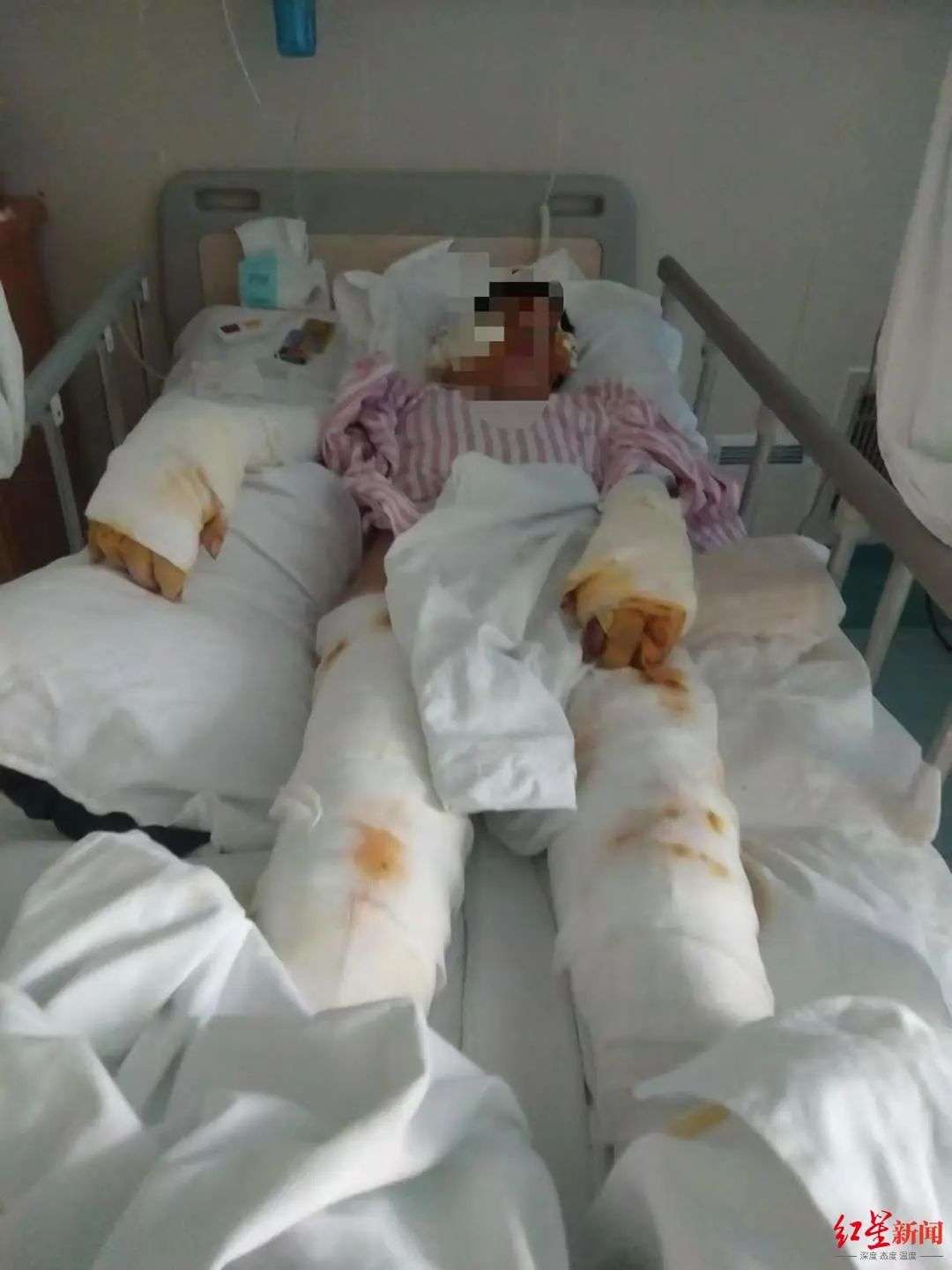 兰女士回忆,被重伤后她昏迷了很久,全身被纱布包裹,昏迷了近一个月才苏醒。醒来后全身无法动弹,目前生活难以自理,更无法正常工作,“全身都是伤,现在就剩半条命了。”