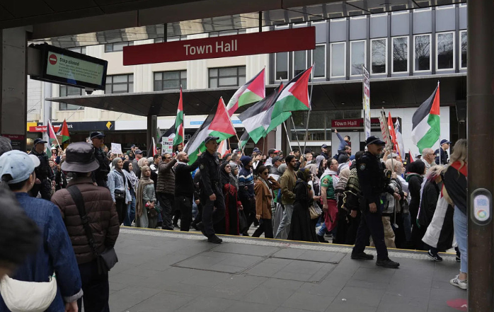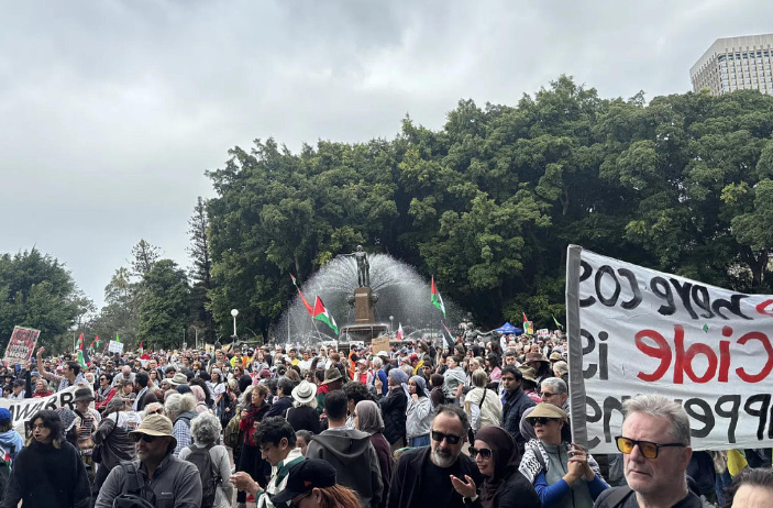 悉尼的游行活动不仅规模比墨尔本更大,场面也比墨尔本更加激烈。支持巴勒斯坦的民众不断用怒吼来表达自己的态度。