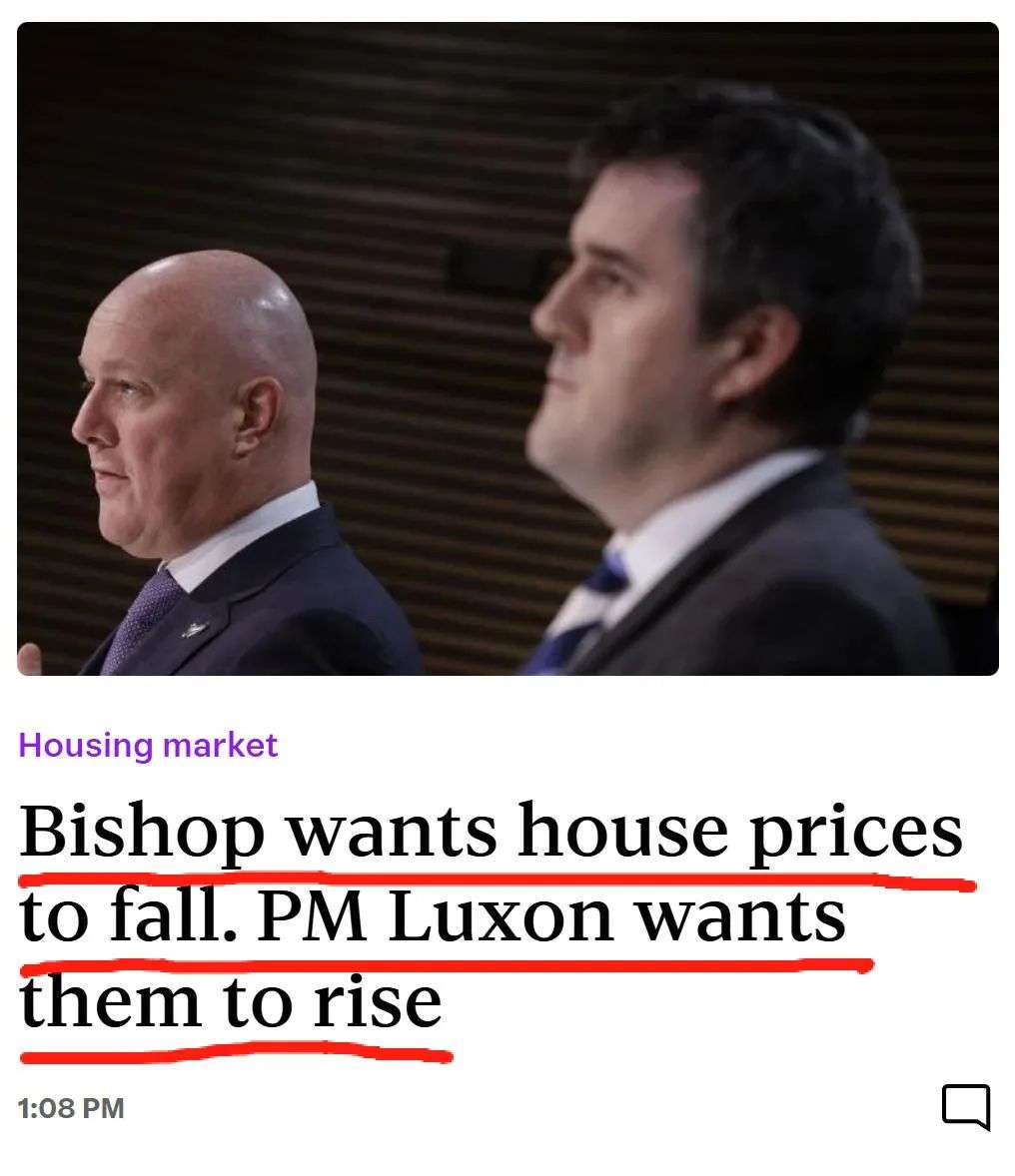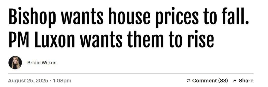 他的这个最新说法,和房产部长Chris Bishop之前表态,可以说是两个方向。新西兰媒体立刻抓住了这一点: