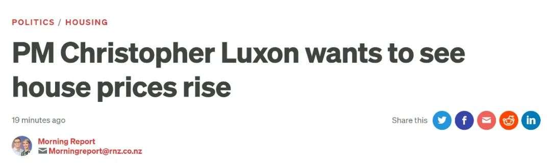 新西兰媒体RNZ今天以“总理Christopher Luxon希望看到房价上升”为题,报道了这一最新变化。