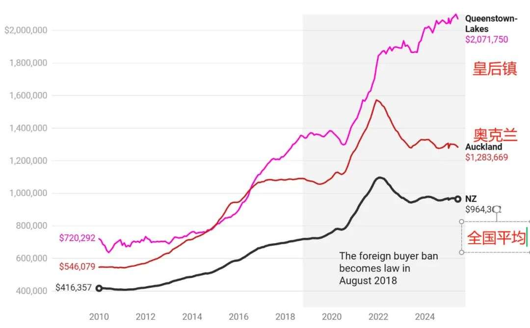 全国仅基督城和皇后镇录得小幅上涨,惠灵顿和奥克兰跌幅还都不小(这两个城市也是现在经济表现最差的)。