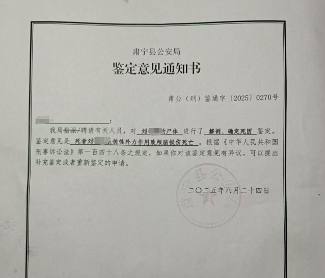 肃宁县公安局出具的鉴定意见书,图据受访者