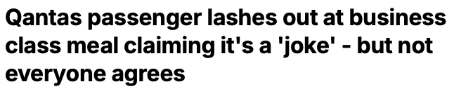 然而最近,一位搭乘澳航QF35航班从墨尔本飞往新加坡的旅客,却因商务舱的餐食愤怒到直接在网络上开喷,引发了一场不小的舆论战。