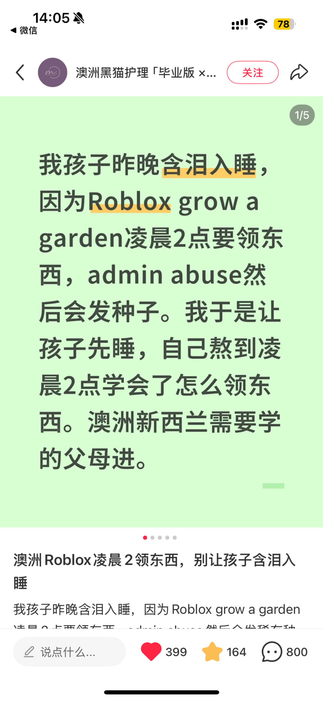 最近,小红书上一条帖子火了。标题很抓眼球——《澳洲Roblox凌晨2点领东西,别让孩子含泪入睡》。